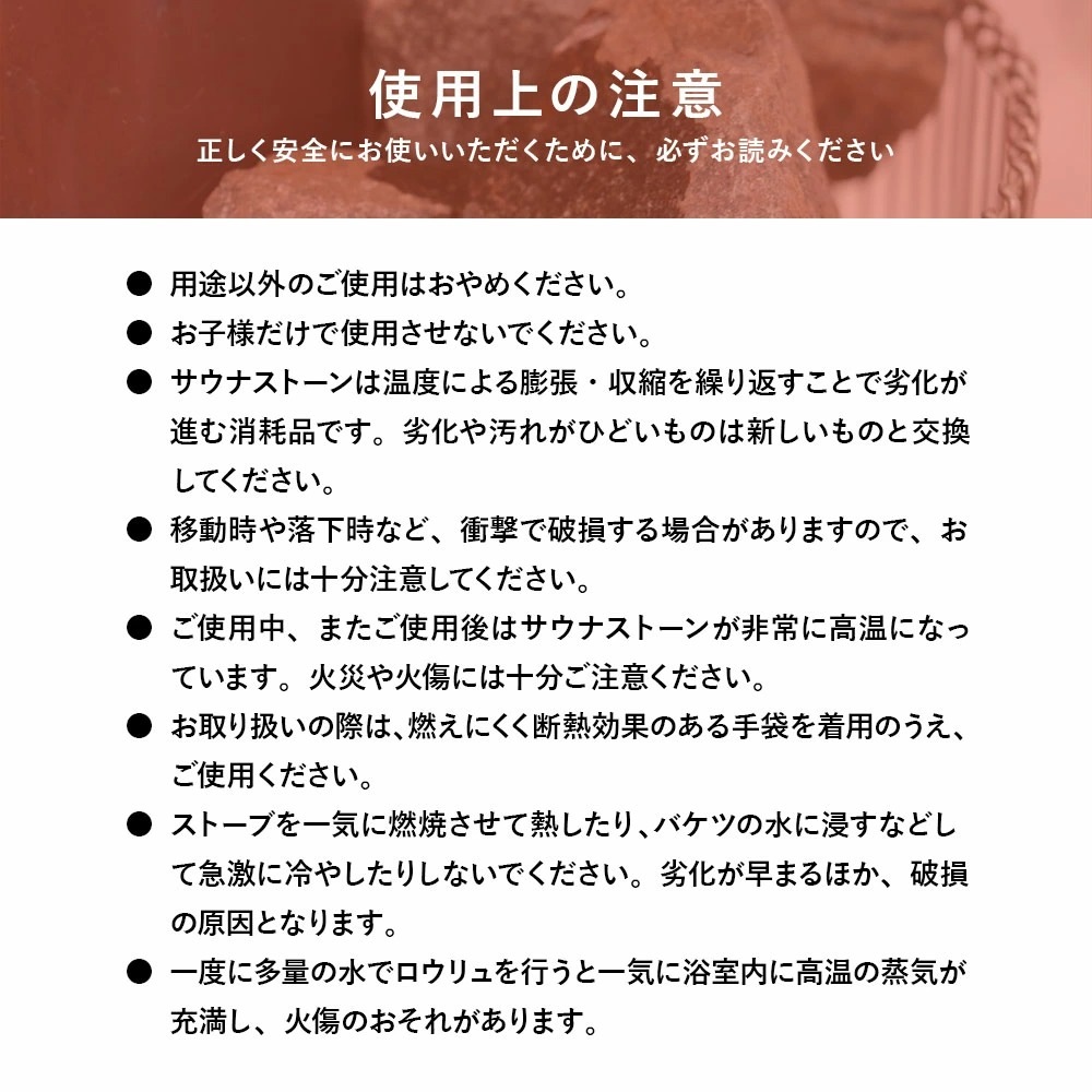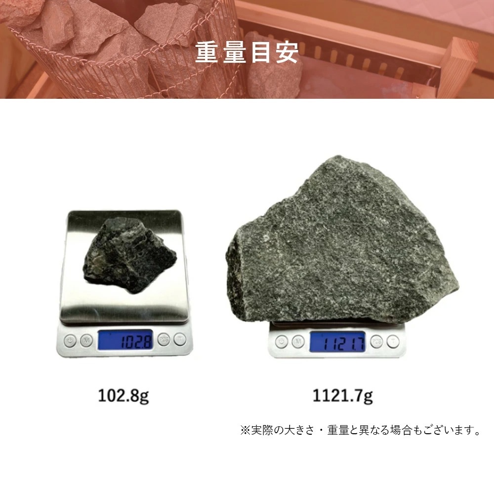 ●このサウナストーンは蓄熱性の高い火成岩(火山岩)の中でも特に強度の高い玄武岩を使用。