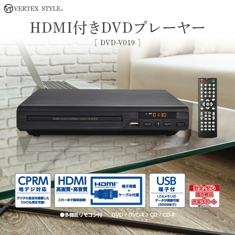 DVDプレーヤー HDMI端子付き 再生専用 DVD-V019BK