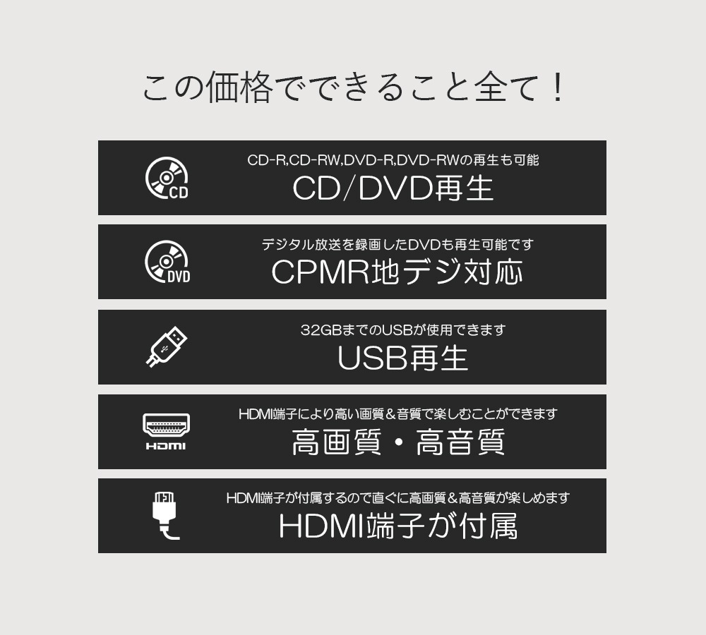 ■再生可能メディア:DVD/CD/CD-R(RW)DVD-R(RW)/USBメモリー(32GBまで)